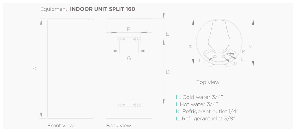 It is composed of an indoor unit, the storage tank, and an outdoor unit, the Split heat pump.