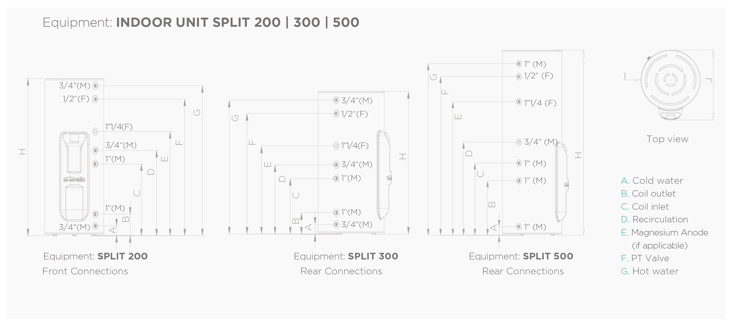| DIMENSIONS mm | SPLIT 200 I/IX | SPLIT 300 I/IX | SPLIT 500 I/IX | ||