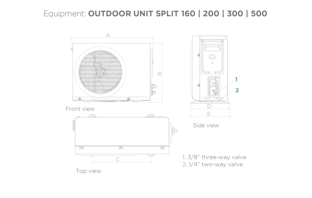| OUTSIDE UNIT | SPLIT 160 | 200 | 300 | 500 | ||||