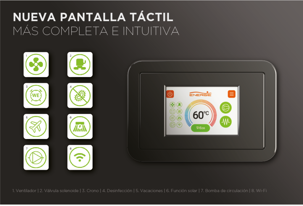 • Control táctil de fácil uso con Wi-Fi y Modbus incluidos;