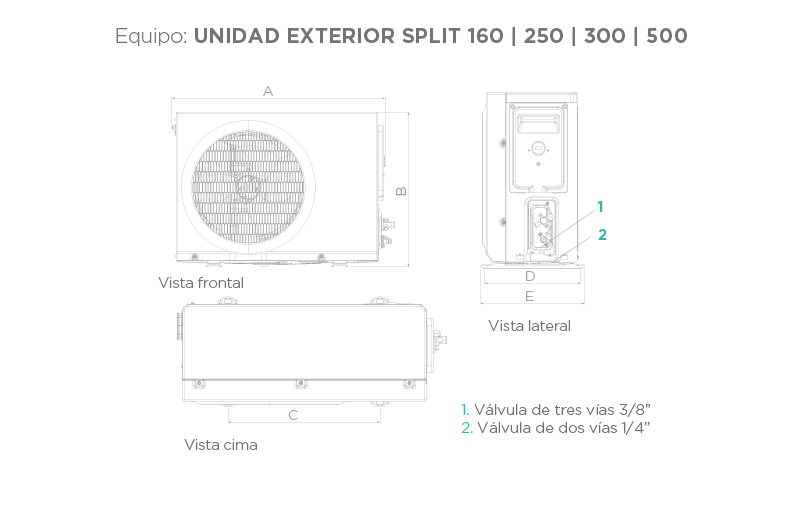 | UNIDAD EXTERIOR | SPLIT 160 | 250 | 300 | 500 | ||||