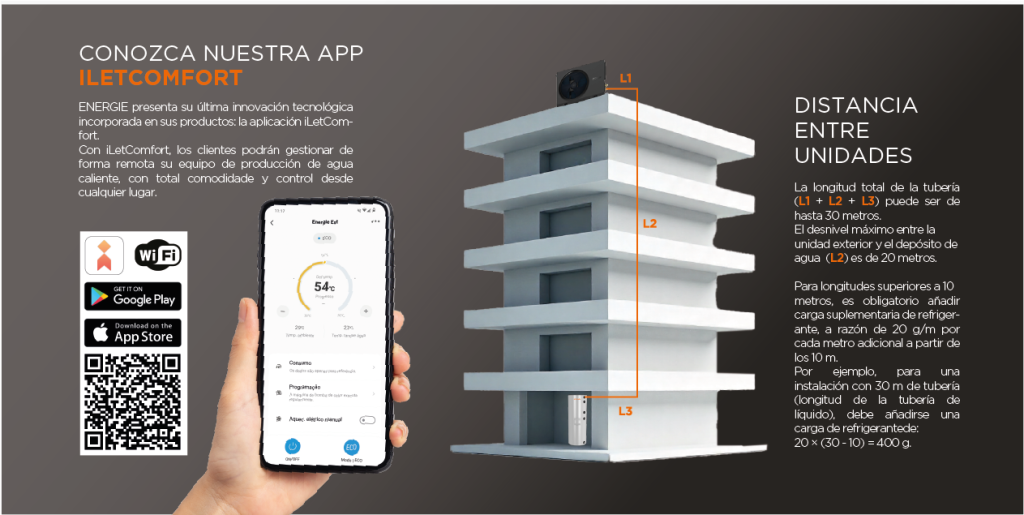 El termoacumulador se integra fácilmente en cualquier espacio, compatible con instalación en armarios estándar de 60×60 cm, y cuenta con conectividad Wi-Fi integrada, que permite una gestión remota sencilla e intuitiva.