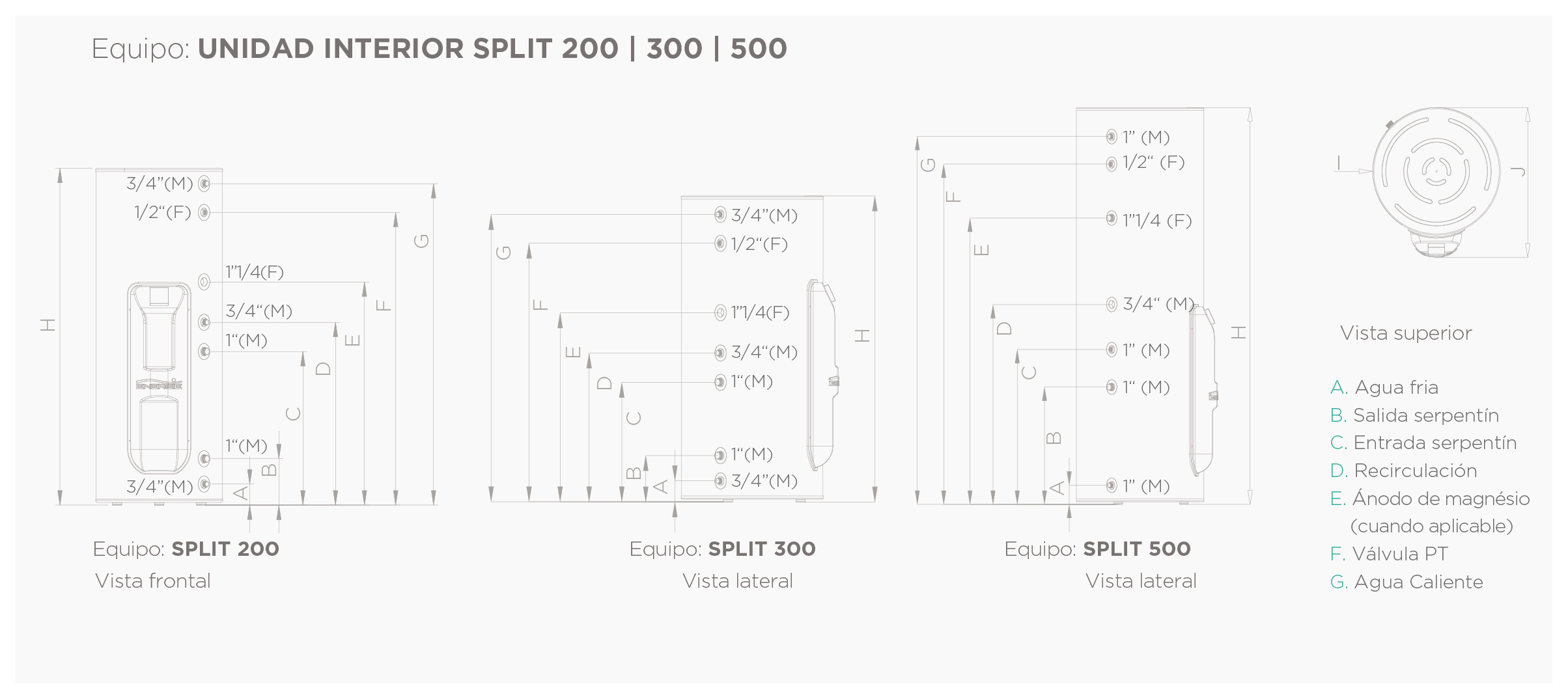 | DIMENSIONES mm | SPLIT 200 I/IX | SPLIT 300 I/IX | SPLIT 500 I/IX | ||