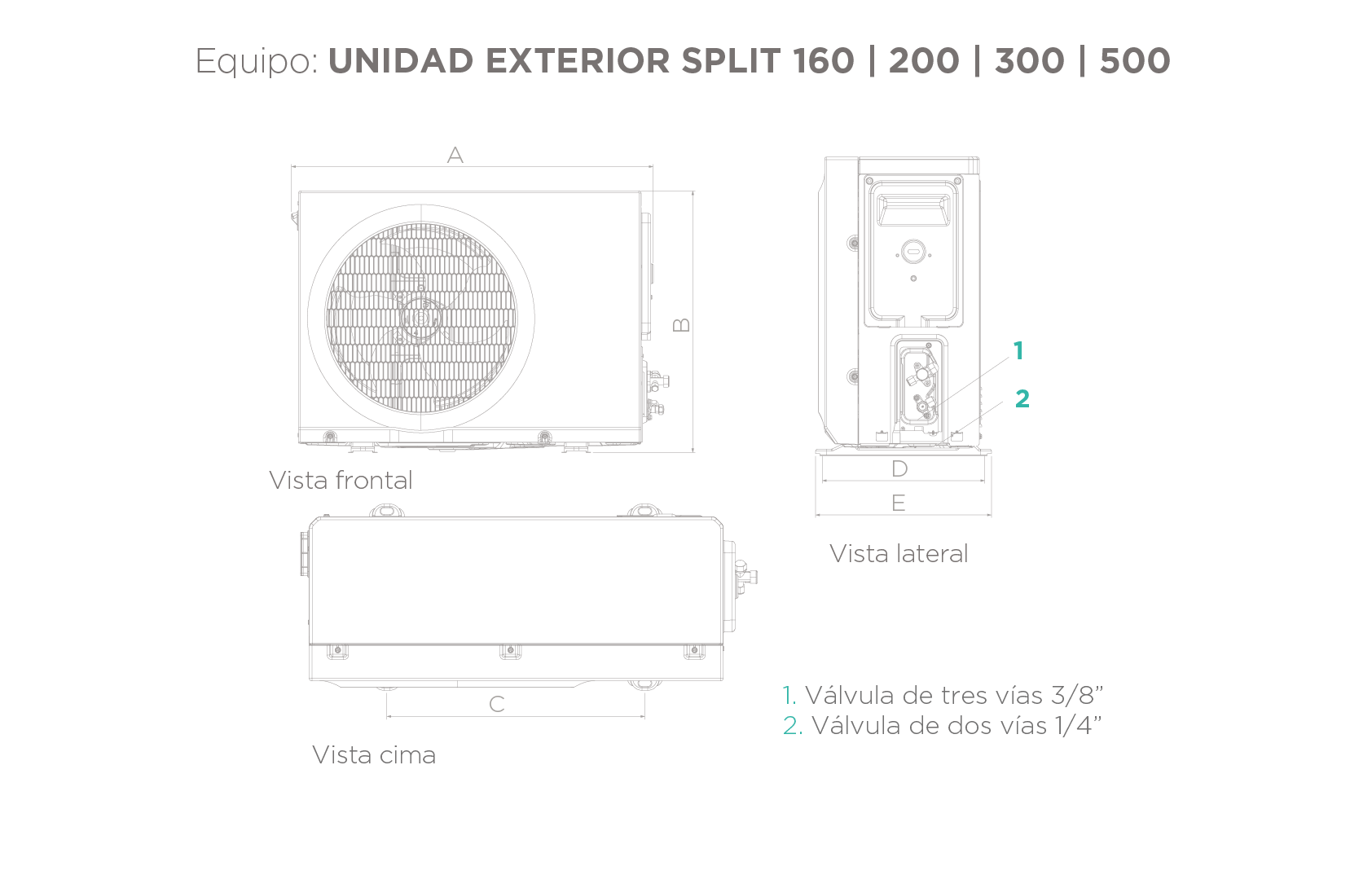| UNIDAD EXTERIOR | SPLIT 160 | 200 | 300 | 500 | ||||