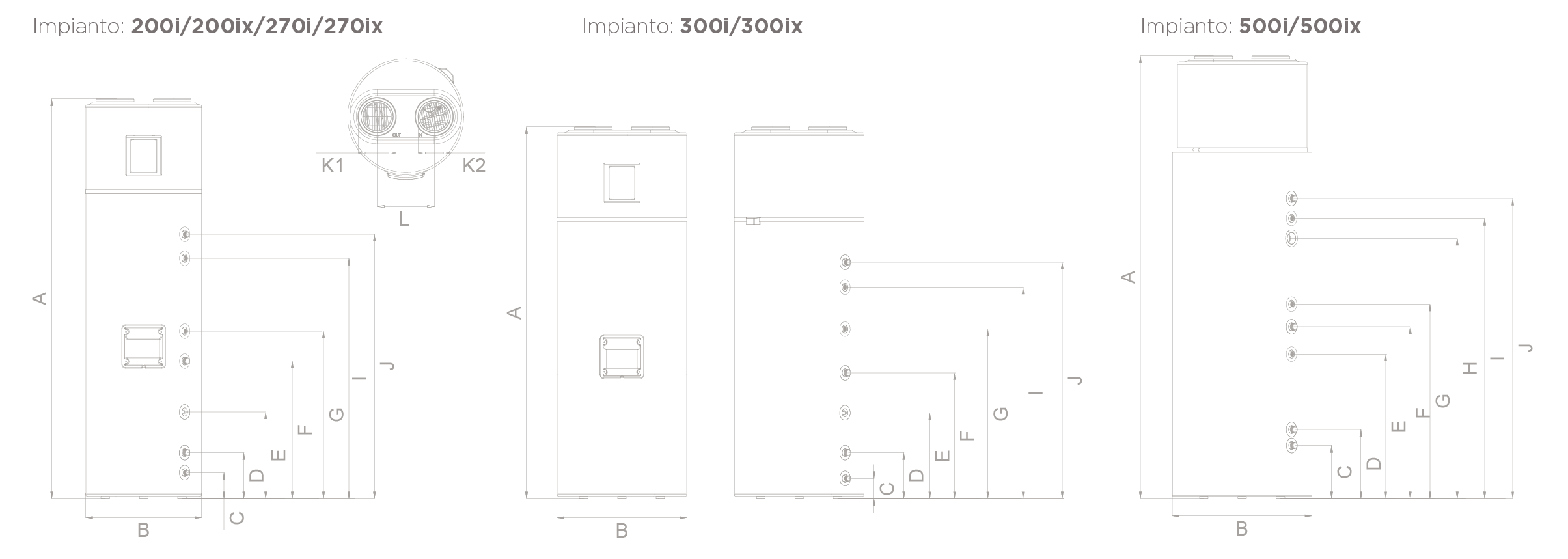 DIMENSIONI mm | 200i | 200ix | 270i | 270ix | 300i | 300ix | 500i | 500ix | |
