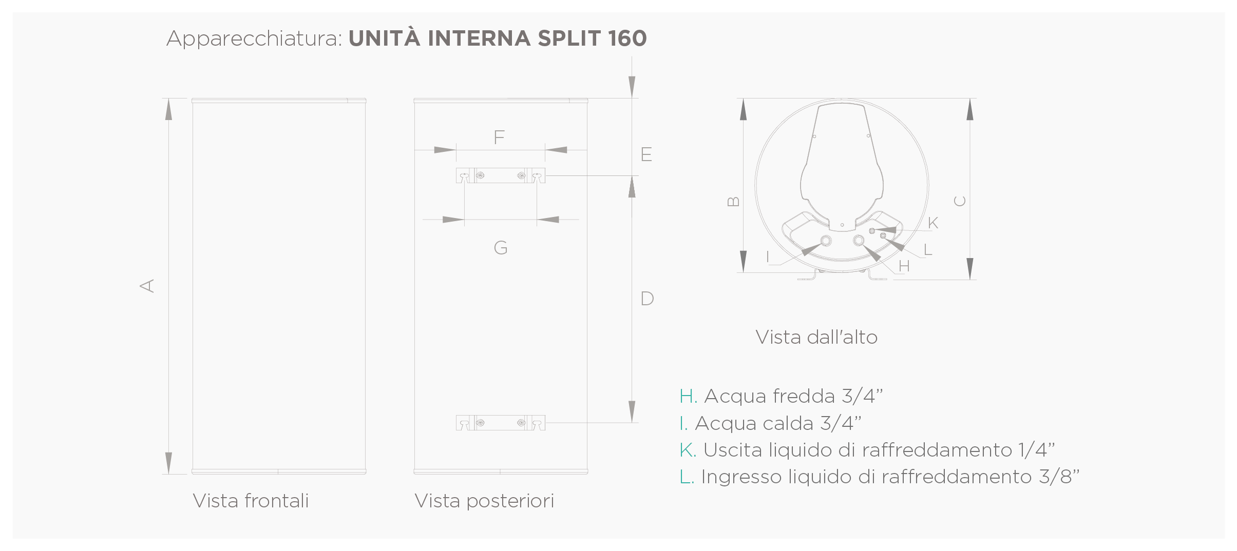 È composto da un’unità interna, il bollitore, e da un’unità esterna, la pompa di calore Split.