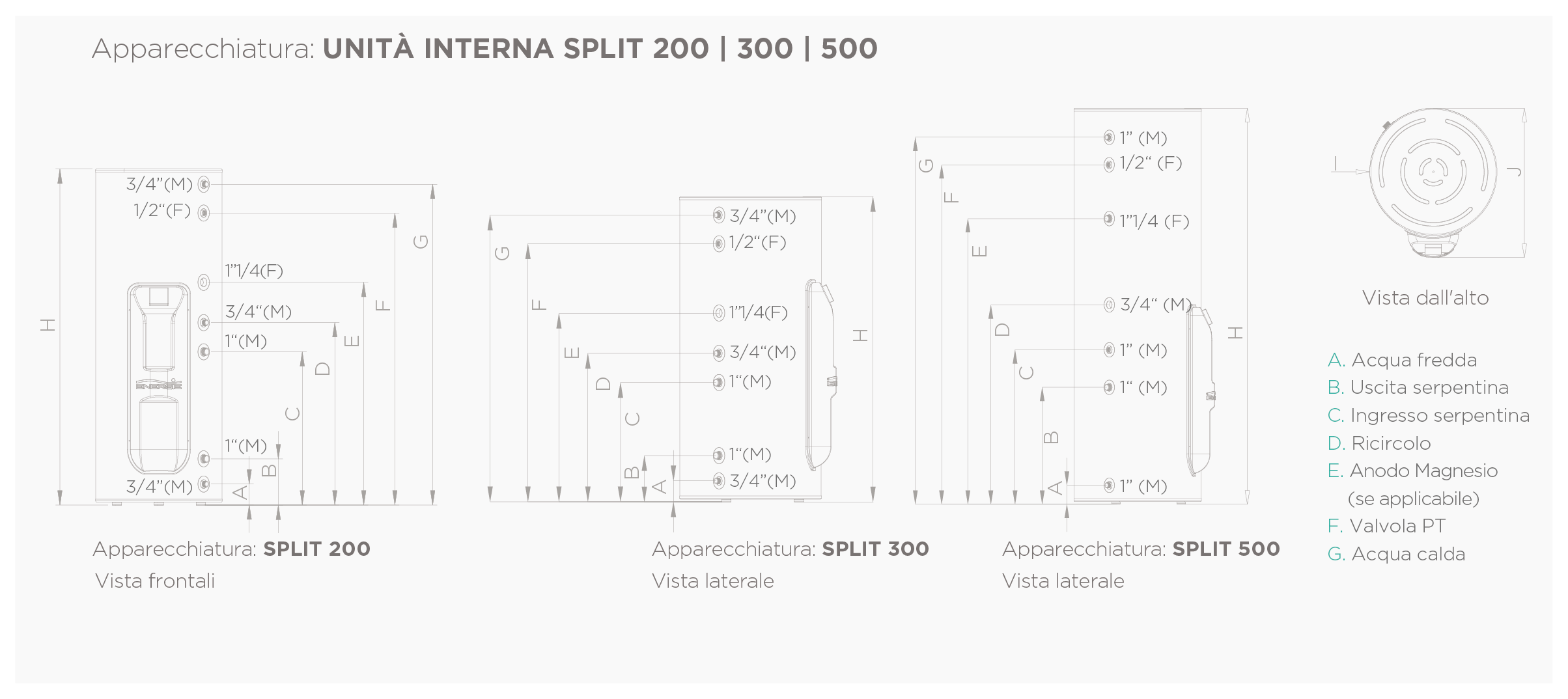 | DIMENSIONI mm | SPLIT 200 I/IX | SPLIT 300 I/IX | SPLIT 500 I/IX | ||
