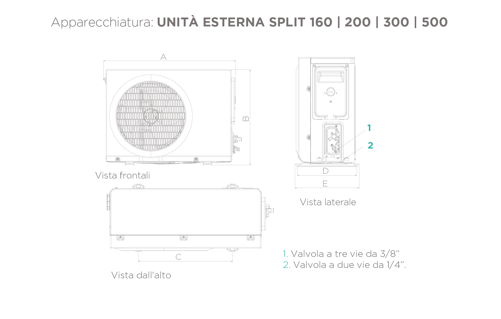| DATI TECNICI UNITÀ ESTERNA | SPLIT 160 | 200 | 300 | 500 | ||||